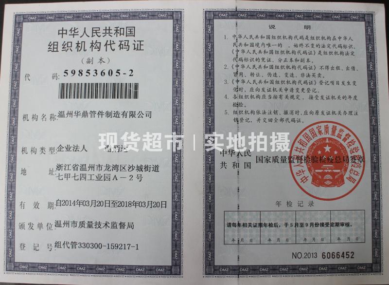 | 企業名稱 | 溫州華鼎管件制造有限公司 | 統一社會信用代碼 | 330303000095502 |