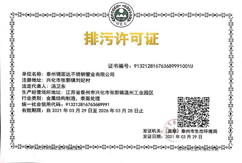 | 企業(yè)名稱 | 泰州鏡面達(dá)不銹鋼管業(yè)有限公司 | 統(tǒng)一社會信用代碼 | 913212816763689991 |