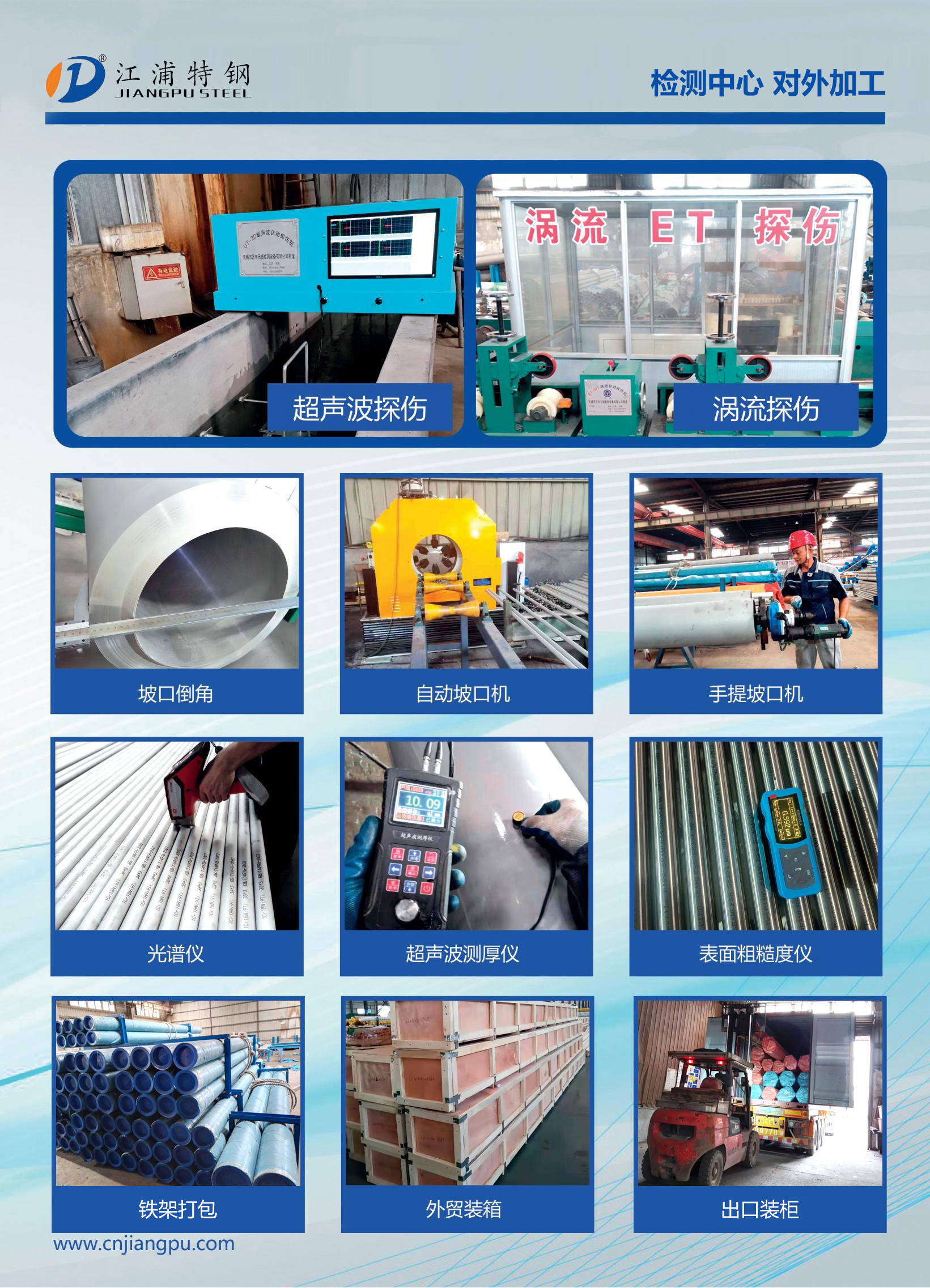 好消息!!! 江浦特鋼 檢測(cè)中心對(duì)外加工:脫脂,鈍化,渦流探傷,超聲波探傷,出口裝柜,精檢包裝。 |