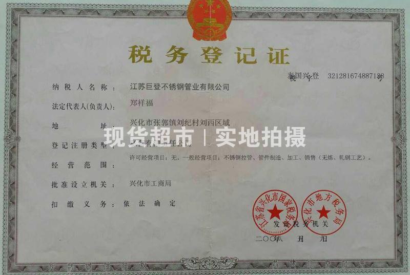 • 江蘇巨登不銹鋼管業有限公司,稅務登記證
