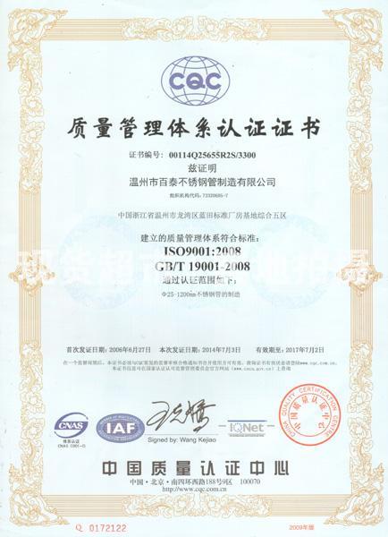 質量管理體系認證證書(中文)