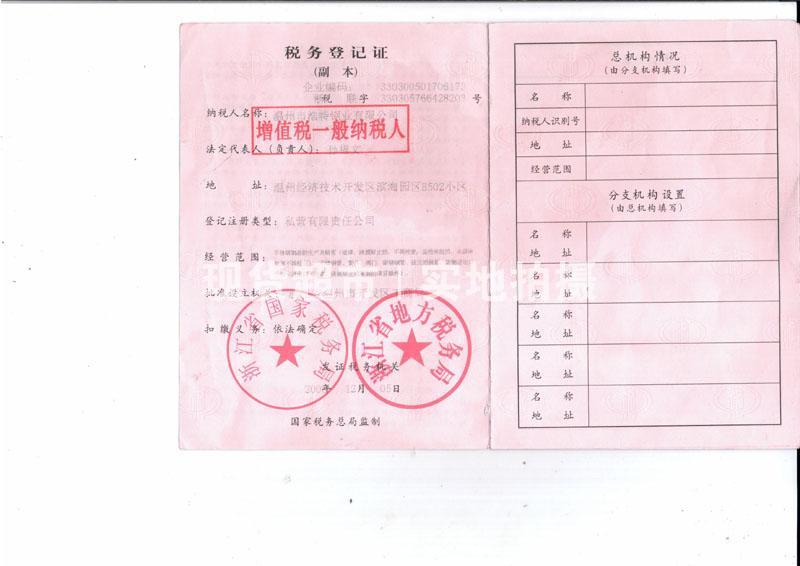 • 溫州市浩特鋼業有限公司,稅務副本
